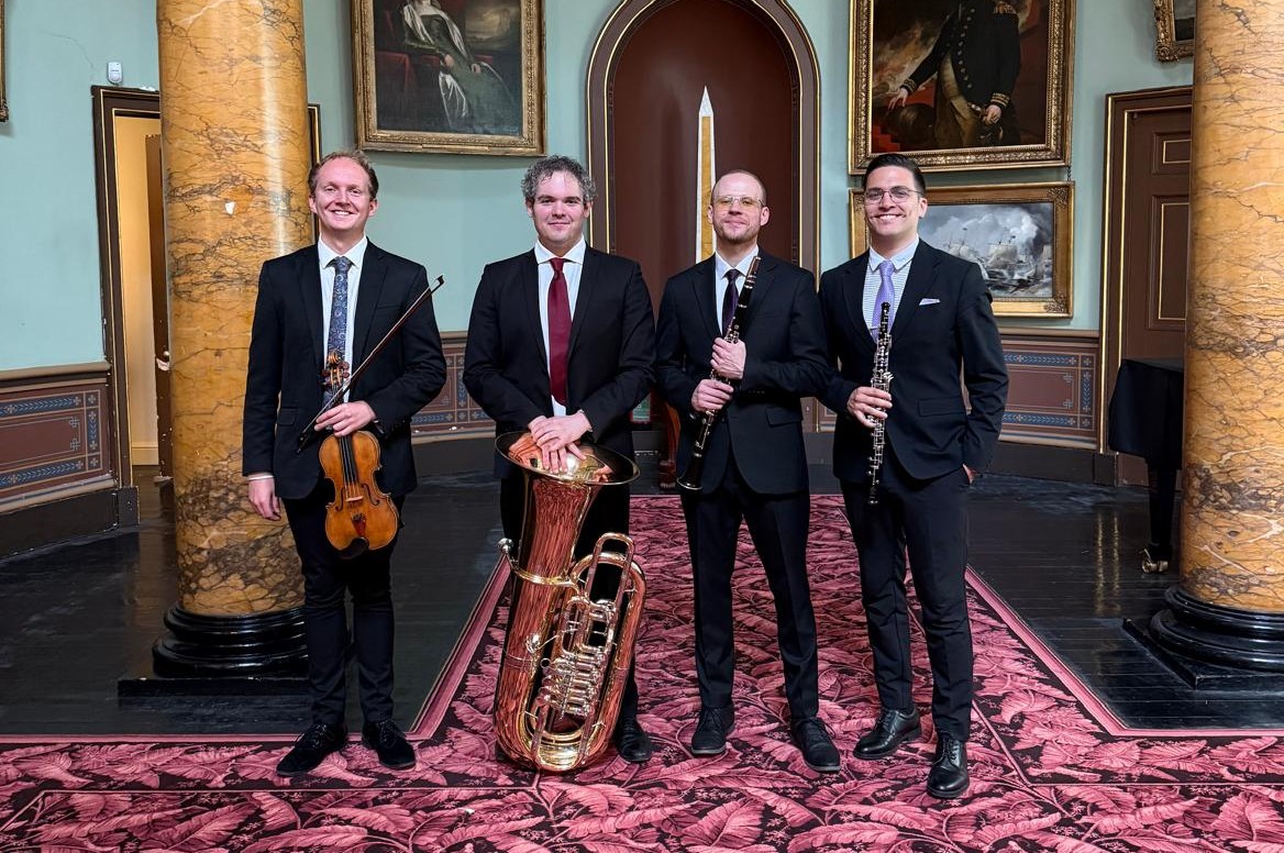 When Sergio was studying at the RCS he reached out to some fellow students to see if anyone wanted to form a chamber music ensemble that he could then write for. However it wasn’t until during the pandemic that he teamed up with his friend Paco and he began writing for oboe, flute and tuba. The group took off and began performing original compositions and arrangements around the country, joined by violinist Eddy Betancourt and clarinettist Pawel Jaworski.